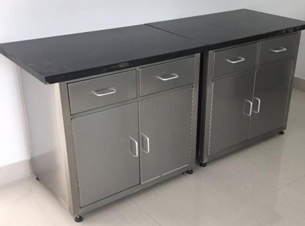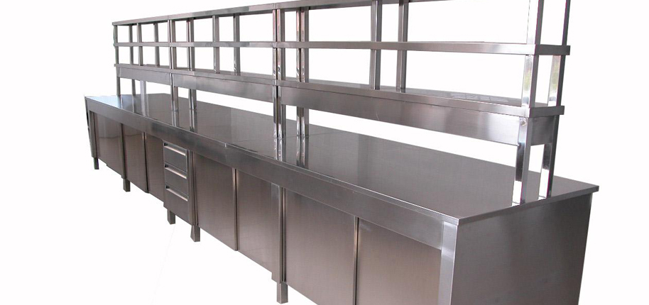 不銹鋼臺(tái)面:采用S304不銹鋼四邊折彎內(nèi)襯18-25MM夾板制作(刨花板、中纖板、實(shí)芯理化板、環(huán)氧樹脂板、千思板、陶瓷板等臺(tái)面,根據(jù)客戶需求提供);